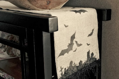 Beautiful stenciling can transform a boring table runner. Use as many motifs as you like, it can be totally customized. Have fun!
